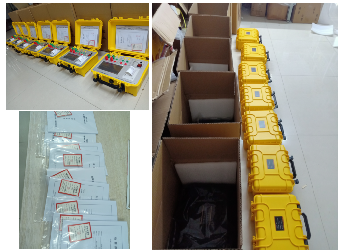 经过为期三天的准备工作,我们将全部的产品技术资料,产品图片,产品鉴定报告等全部打包发送给客户,在这里祝福于总旗开得胜,一举拿下变压器检测设备包,第一批物资很快就下了订单。采购了6套变压器容量测试仪,该有源变压器容量测试仪是我公司自主开发的全新产品,使用简单,操作人性化,还可以打印检测数据。